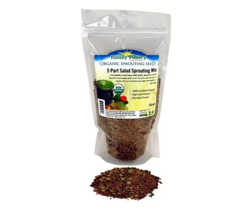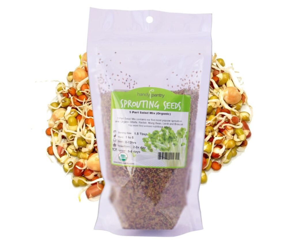Handy Pantry provides a wide range of certified organic sprouting seeds, including broccoli, alfalfa, mung bean, garbanzo, radish, sunflower, lentil, fenugreek, wheatgrass, mustard, chia, and various salad seed mixes.